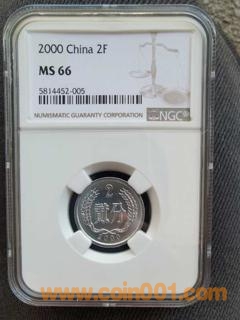 2000年2分 NGC MS66--110 2000年1分 NGC MS66--110 MS67--170 MS68--240 MS69--350 MS70--450 喜歡朋友加微信聯系13643139096 郵費到付