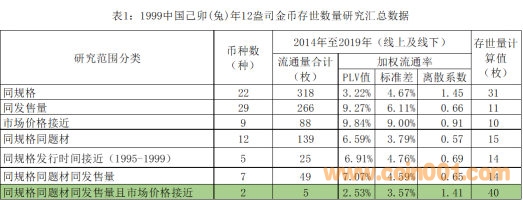 (五)通過上述假定條件可以看到,在研究某一幣種的存世數量時,如何匯集眾多幣種的流通率,即“相似特征幣種的實際平均流通率”(以下簡稱PLV)就將成為關鍵。從一般情況看,確定PLV指標應該從這個幣種的多種特征出發,進行全面的分析和對比研究。