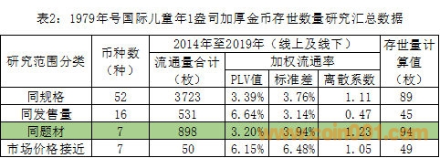 附表3:1979年號國際兒童年1盎司加厚金幣存世數量研究數據