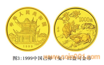 1.1999年中國己卯(兔)年12盎司金幣
