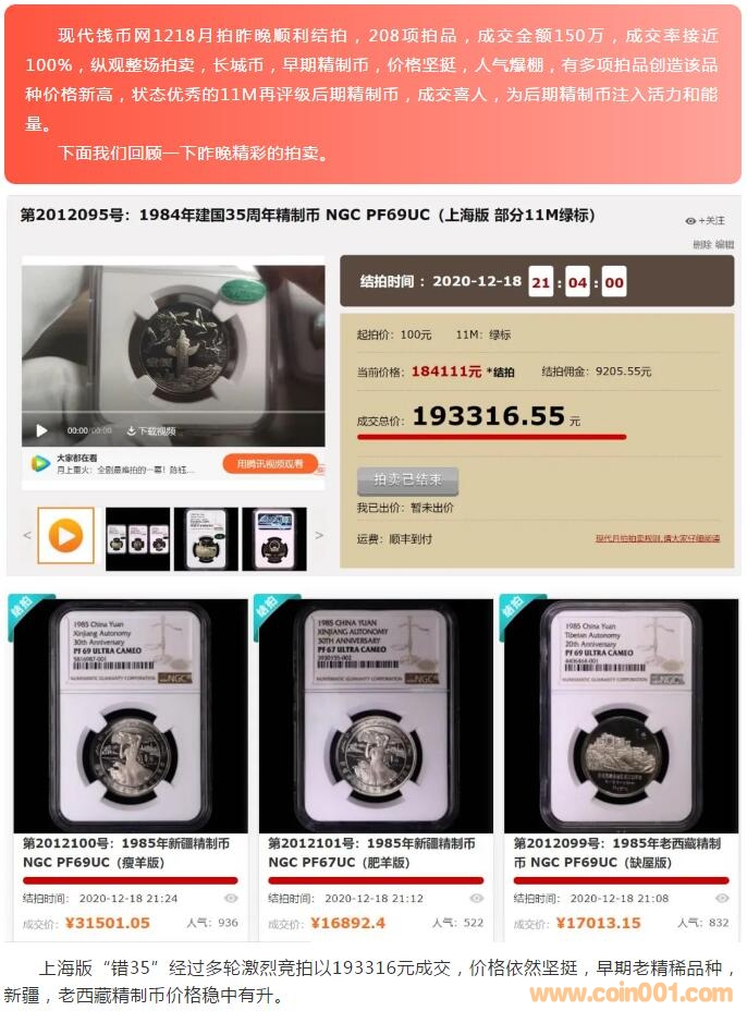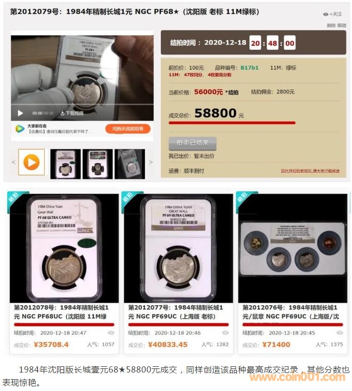 評級普通(精制)紀念幣交易