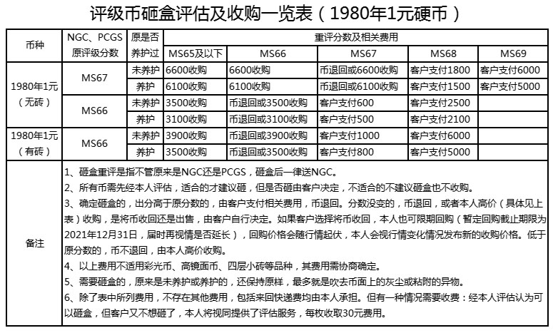 具體操作流程:客戶將幣發(fā)給本人(順豐到付)-----本人進(jìn)行評(píng)估-----向客戶通報(bào)評(píng)估結(jié)果,提出能否砸盒