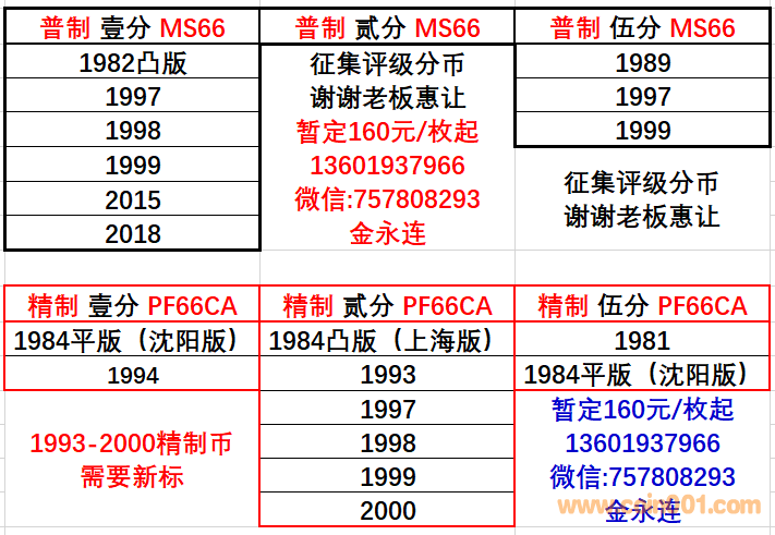 征集普制\精制分幣