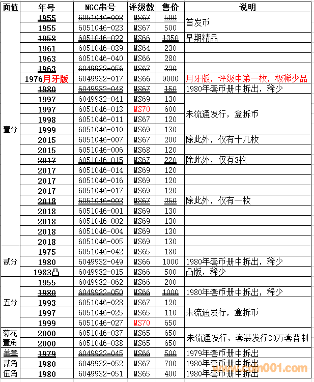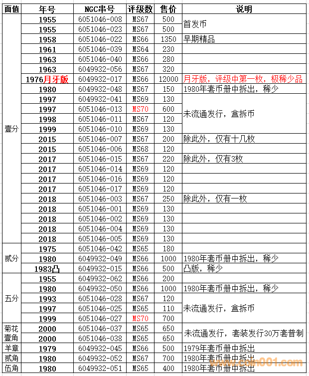 評級普通(精制)紀念幣交易