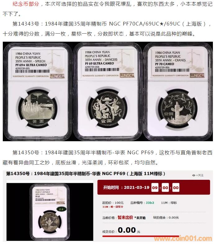 評級普通(精制)紀念幣交易