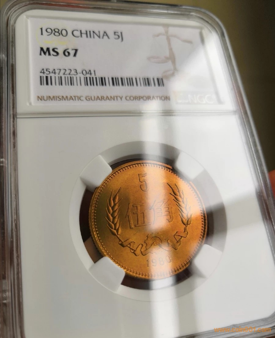出1枚80年紅銅5角NGC67分