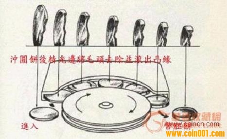 1)幣餅光邊、去毛頭及滾凸緣(稱upsetting) ,并使幣餅的邊加高,可免幣面磨耗及方便堆疊。