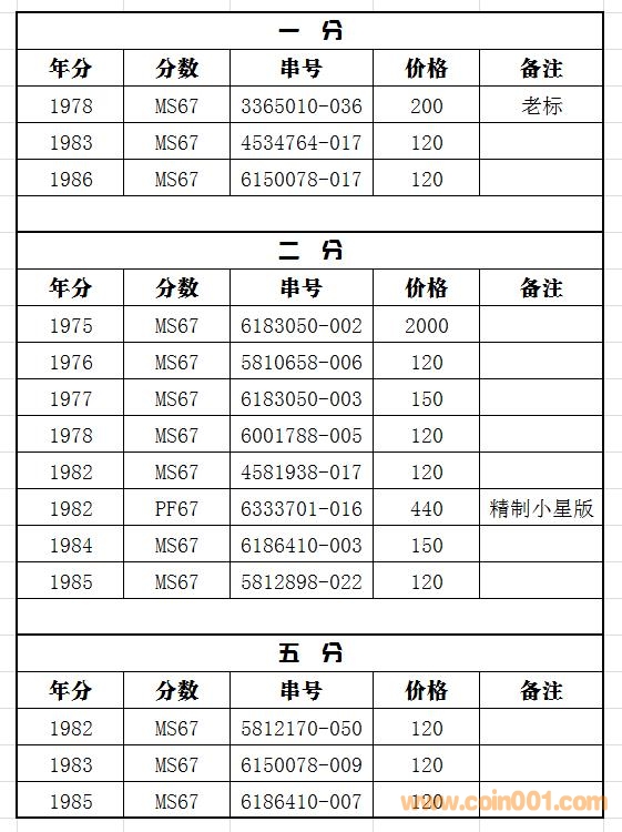 掛售一批NGC MS67分幣, ..