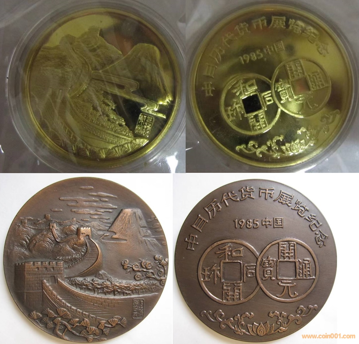 1985年制造,上幣發行。正面為長城,富士山,反面為開元通寶及日本貨幣。