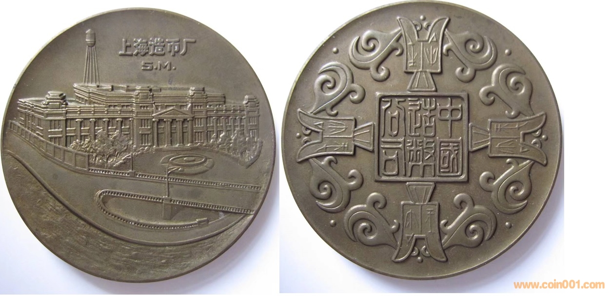 1979年制造,黃銅55mm,上幣發行。正面為上幣廠房,反面為古幣。此章當時作為禮品回贈給日本大阪造幣廠,未公開發行,是新中國歷史上第一枚大銅章。據說后期造幣廠又重新制造過這一枚大銅章。