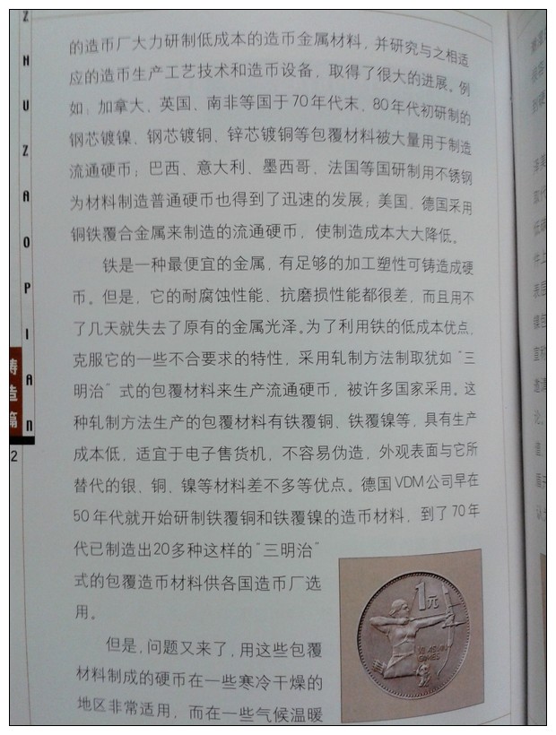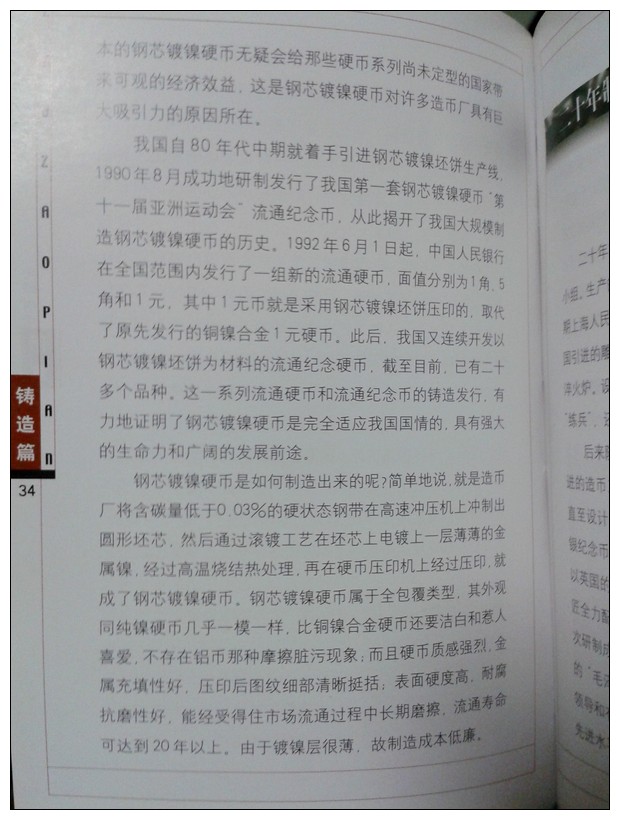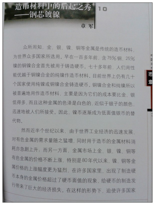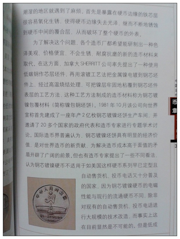 引用 引用第21樓雪寒于2013-05-16 21:50發表的 : 我們是把鎳包鋼簡化為鋼芯鍍鎳了,造幣過程應該是先有鍍鎳鋼板后壓軋的,不是先壓軋后鍍鎳,所以叫鎳包鋼也不是很牽強,鎳包鋼過程實驗成功后發過一枚紀念章,命名為鎳包鋼工程驗收紀念章,而后發行的是第一枚鎳包鋼流通紀念幣是第十一屆亞運會特種流通紀念幣,也是唯一一枚大直徑鋼芯鍍鎳紀念幣