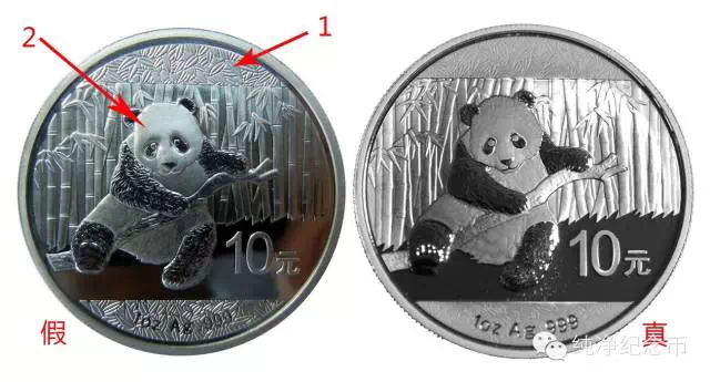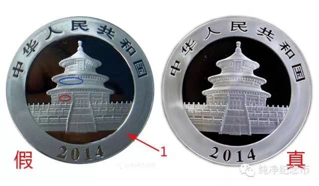 為了大家能更好的欣賞和收藏熊貓銀幣,本人特制作了一些14年1盎司真假銀貓圖錄,從真假銀貓的部分細節比對上作為以幫助廣大泉友去偽存真。