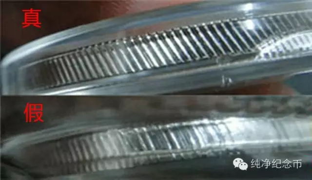該種假幣最大特點在于:該種假幣幣身較真幣略厚;且幣面給人以磨砂之感,遠沒有真幣幣面光潔,鏡面質感不足,真偽放在一起對比便一目了然。