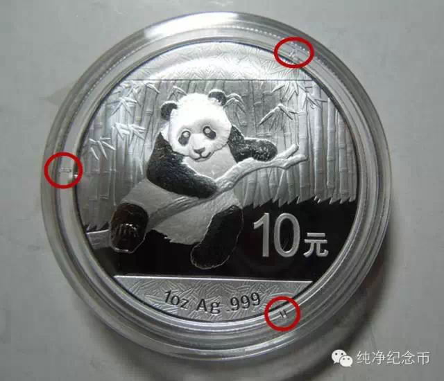 十元面值的熊貓銀幣自2002年起便采用了斜齒防偽工藝,所以一旦看到直齒的2014年熊貓銀幣,那么不用想也知道,必然是假幣無疑了。當然現在的假貓也有一部分是斜齒,這個方法只適合做初步鑒別,不過部分銀貓由于工藝的不穩定,絲齒上的齒不完整。