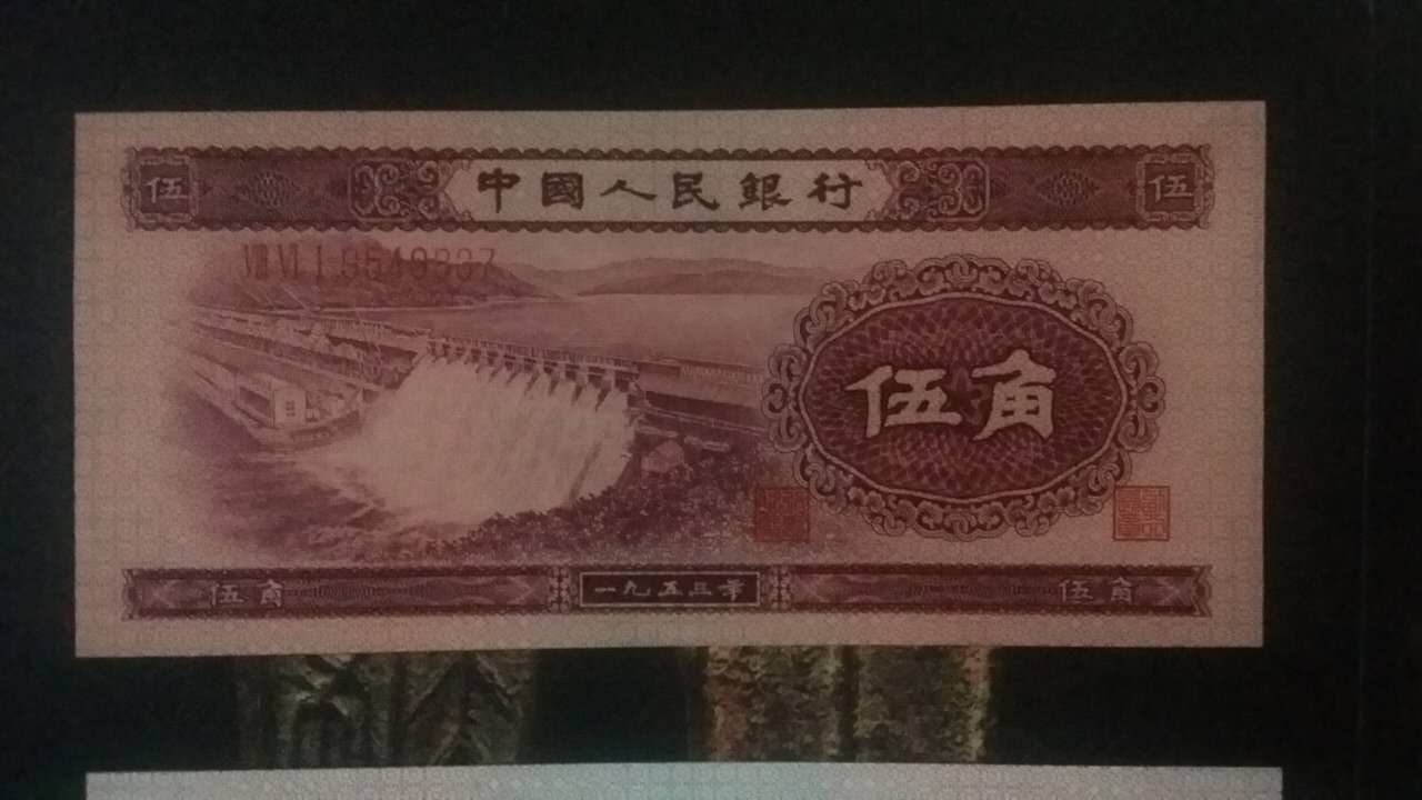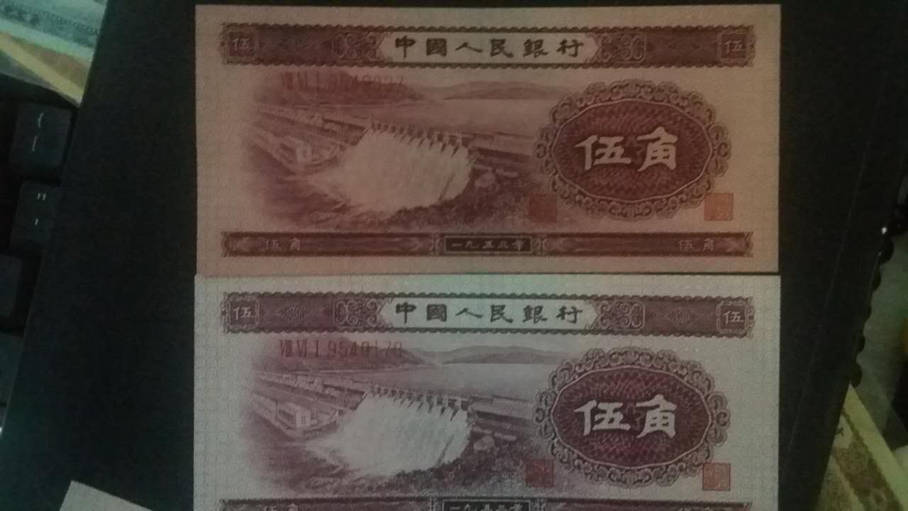 它本來就是正常的水壩伍角,大概太陽曬多了,顏色略有改變而已。 哪里有什么沈陽版了? 水壩伍角只有北京541廠和東河501廠生產,沈陽在建國后根本沒有印過紙幣。