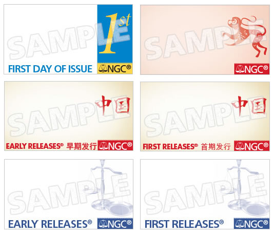 目前NGC官方定制發(fā)布的二猴標(biāo)有:首日標(biāo)七種 金藍色1st標(biāo)、猴標(biāo)、賀歲燈籠標(biāo)(馬到成功、年年有余、闔家安康、財源廣進、萬事勝意)