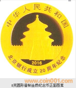 中國人民銀行定于2016年1月5日發行北京銀行成立20周年熊貓加字金銀紀念幣一套。該套紀念幣共2枚,其中金質紀念幣1枚,銀質紀念幣1枚,均為中華人民共和國法定貨幣。