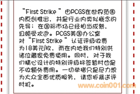其中二猴與福字幣可選擇加“First Strike”認證標簽,無數量限制。但這兩種幣要同時加FirstStrike+賀歲標簽需要送評滿50枚才可。(具體內容看下圖)