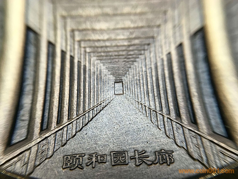 這幅鑄紋特寫通過近攝,清楚地展現出一枚用晚期工作模壓印的牡丹一元上的粗大鑄紋。在這樣攝影中,用光比普通的錢幣攝影難得多。光線的角度、強度稍有變化,都會影響最終的拍攝效果。作品恰到好處地把光線反射的最亮部分落在要拍攝的鑄紋上,突出了鑄紋部分。微距攝影的另外一個難點是對焦。高倍放大拍攝時景深很淺,對焦范圍很窄,哪怕是按快門的輕微動作都會造成模糊,而這幅作品的鑄紋部分對焦準確、銳利。而且聽說攝影者并沒有使用翻拍架或三腳架這樣的器材固定相機,完全靠手持。取得這樣的效果尤為不易。當然這背后的辛苦和付出也是平常人無法體會的。