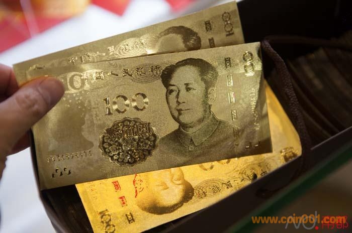 金光閃閃,其圖樣、大小與百元人民幣無異,還有證書驗(yàn)明身份,“含金量999‰”。不過,你還真相信這是金箔做的?