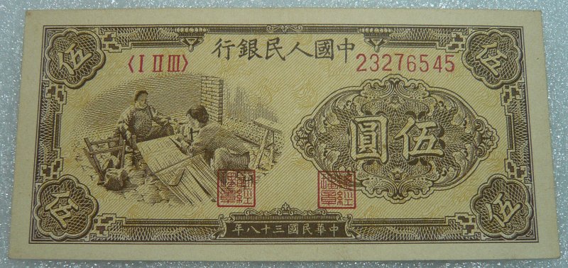 一版人民幣伍圎織布
