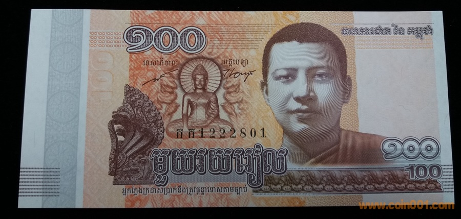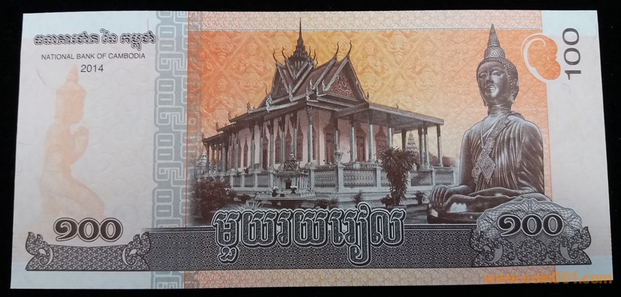 4. 柬埔寨2014版100瑞爾紀念鈔 1張