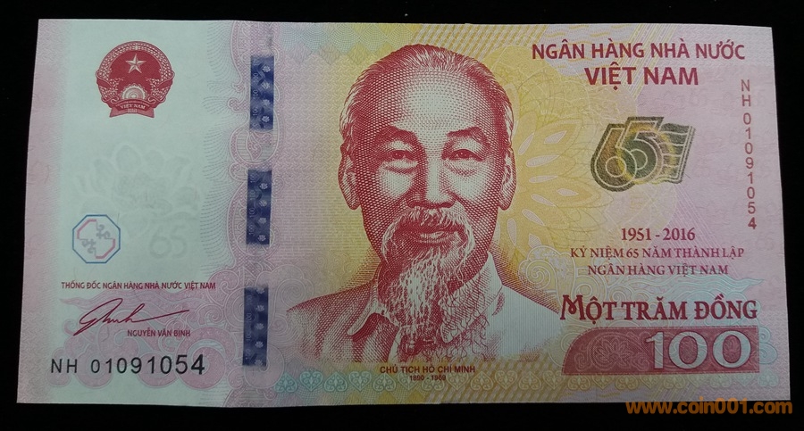 3. 越南國家銀行成立65周年紀念鈔 1張
