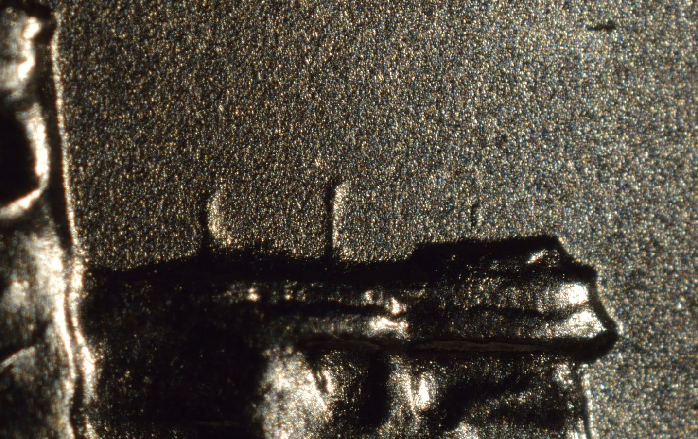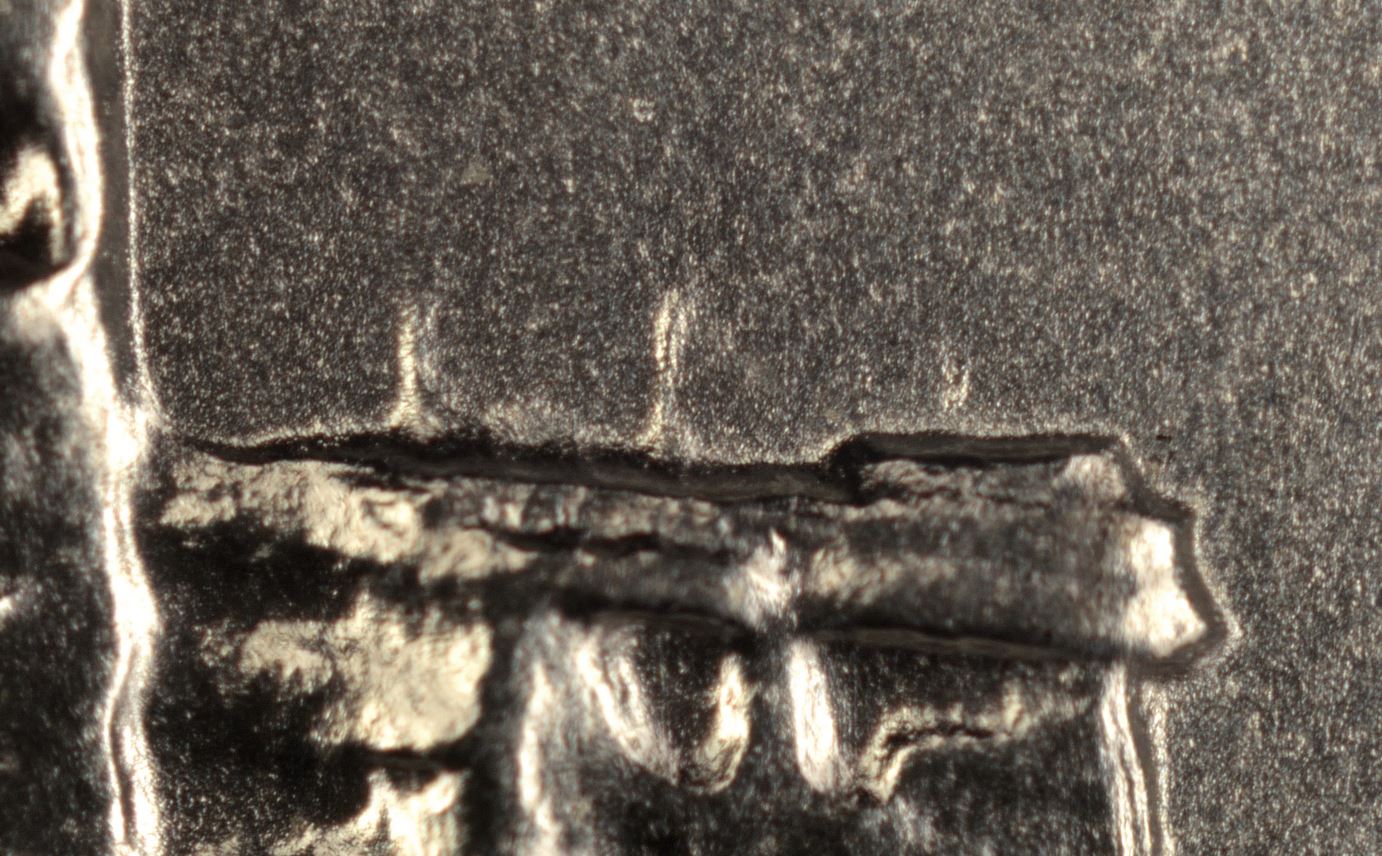 因為最外側的那一根柱子非常淺,只是在特定光線角度下拍的高清照片上才能見到,因此至今無人注意。為了確認這第三根柱子不是偶然產(chǎn)生的,我仔細拍攝、觀察了手頭不同品相的四枚直角邊老西藏。上面毫無例外都有三根柱子。