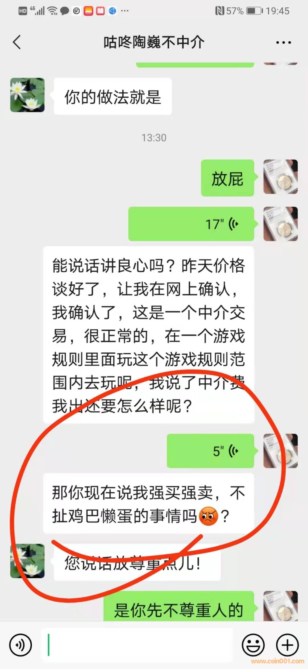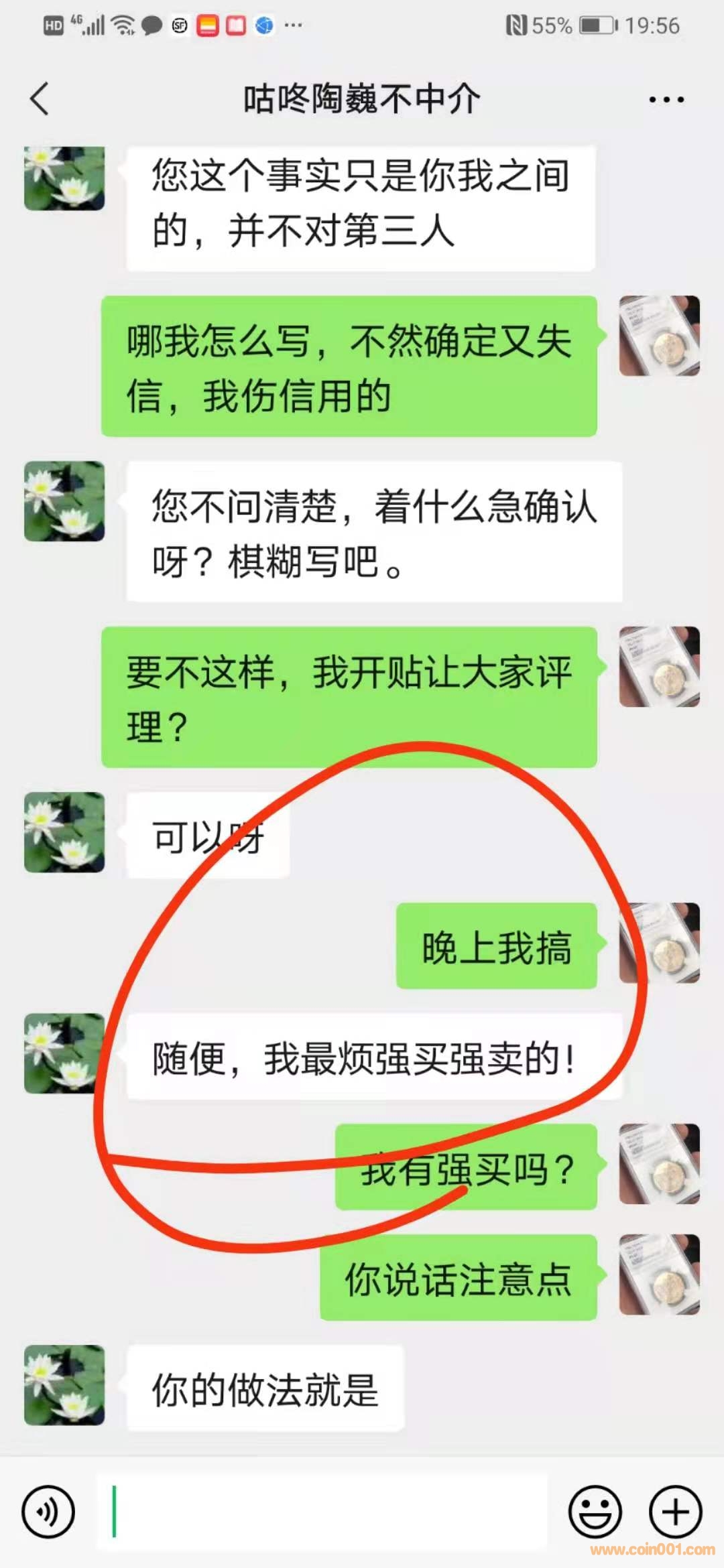 有聊天記錄,是誰先沒理的?不原意網站中介交易?讓我取消交易?我這里沒有問題.但兄讓我在網上跟貼取消交易的.但又不讓我說明為什么取消交易,這對我來說很傷信用!圈子內玩,信用比什么都重要!確認了,又不要,出爾反爾,以后我就不用在現代網混了,這是我為什么一定要說明取消交易.