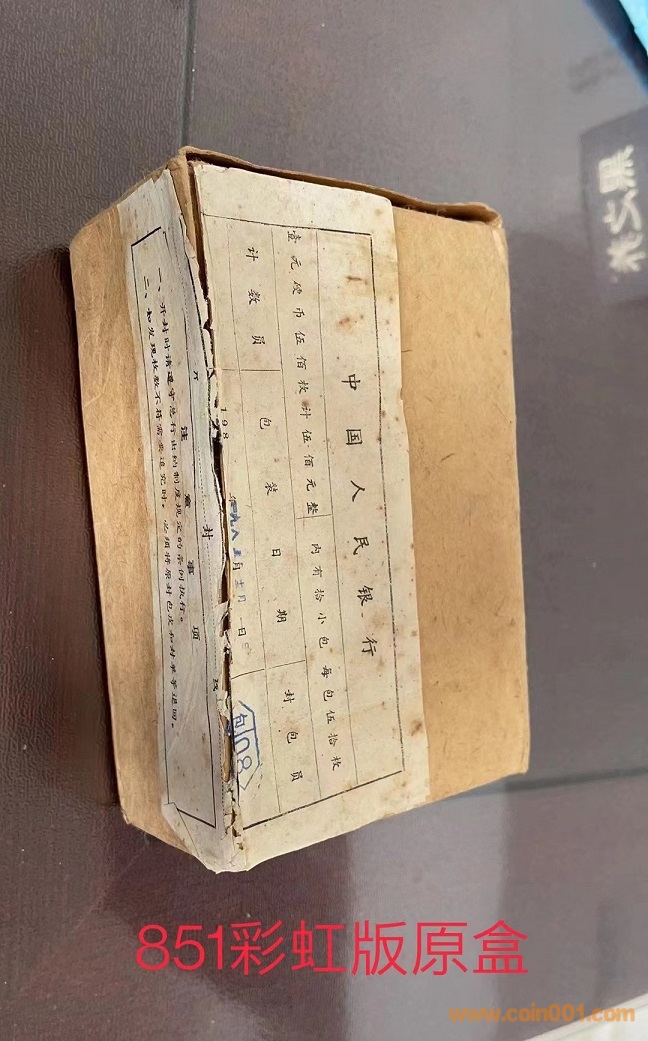 如今經過40多年的消耗和沉淀,長城幣的收藏價值已得到了公認,尤其是近幾年801和831的價格漲勢驚人,價格漲上去的同時,801/831原盒和原卷貨在全國范圍已很難見其蹤影,而851長城幣作為長城板塊低估的品種,其原盒原卷貨無疑成了相對來說比較好的投資標的,851的發行量遠遠少于811,但長期以來其價值被低估,價格與811相差不大,甚至在2015年811文交所上市的時候,811電子盤大王吳如芮,為了收集更多811托管上市,用851寬版原盒等價值交換811原盒。當然這幾年,越來越多的收藏者認識到851的價值,其價格逐步開始價值回歸,本文主要探討851長城幣原盒的三種包裝形式以及通過封簽日期推斷851的發行量,并不涉及851版別的討論,此外由于本人經手的851原盒數量有限,有錯誤之處望廣大幣友不吝指正,也希望拋磚引玉,引出對851長城幣的探討。