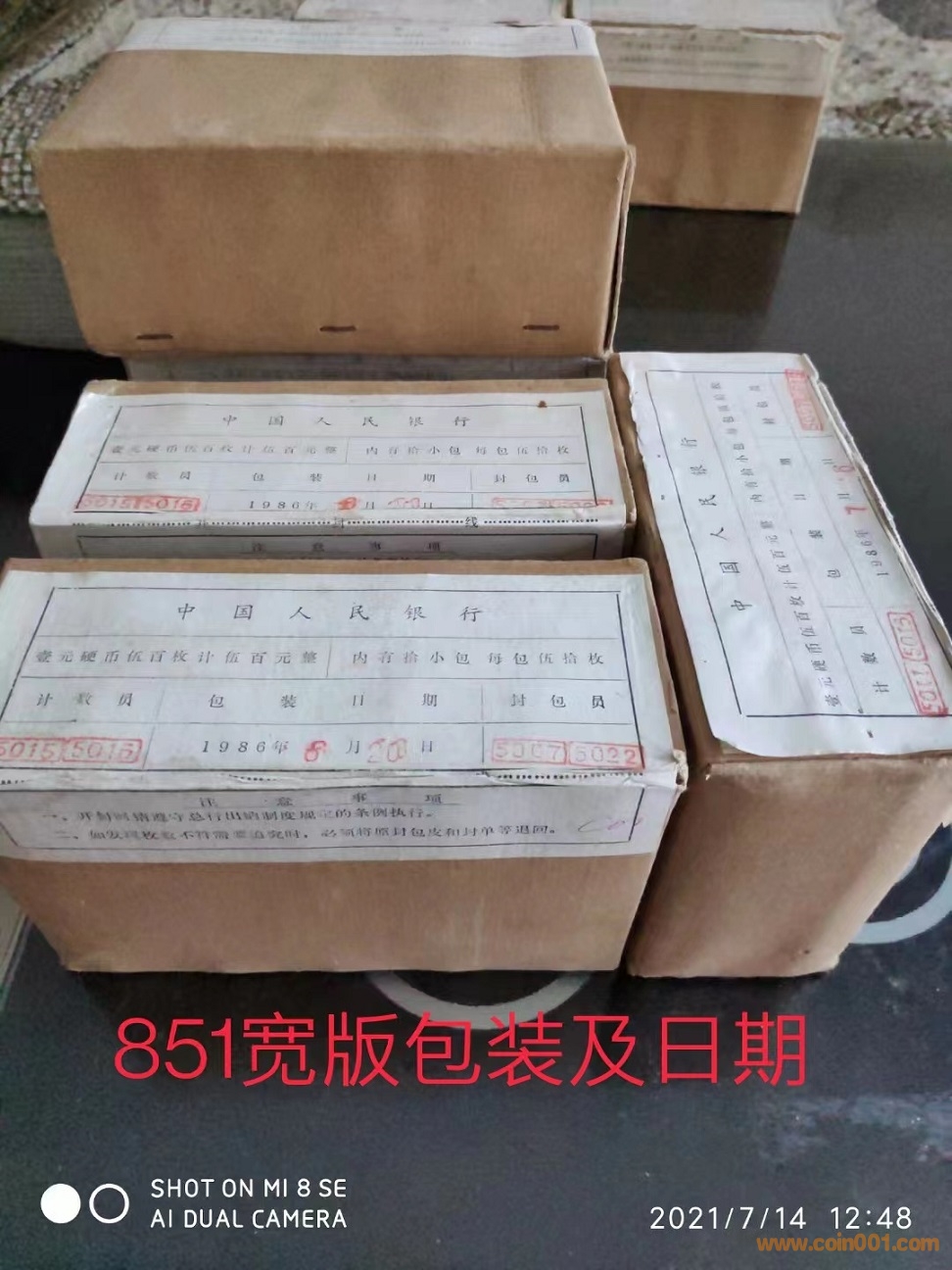 2. 1986年春節之后上海造幣廠開始批量生產普通窄版,卷紙采用牛皮紙機卷,從生產的月份以及流水線的機卷包裝來看,其生產數量應該是遠遠大于851油蠟紙手工卷包裝的幣,幣的工藝和狀態也劣于油蠟紙人工卷。