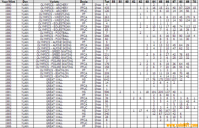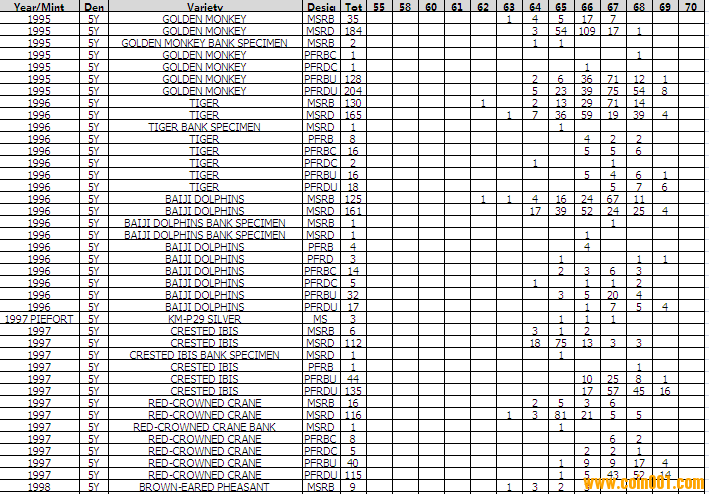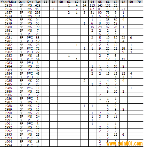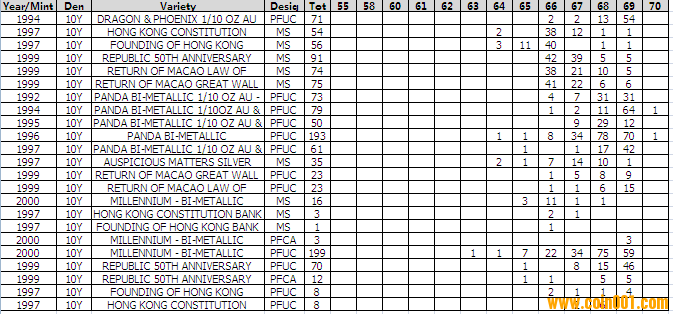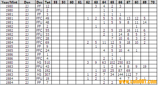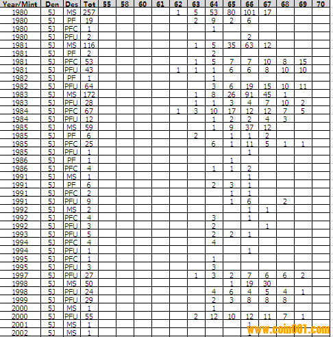 NGC硬幣評級分?jǐn)?shù)分布 ..
