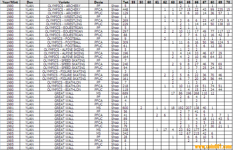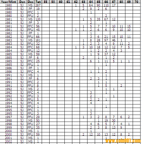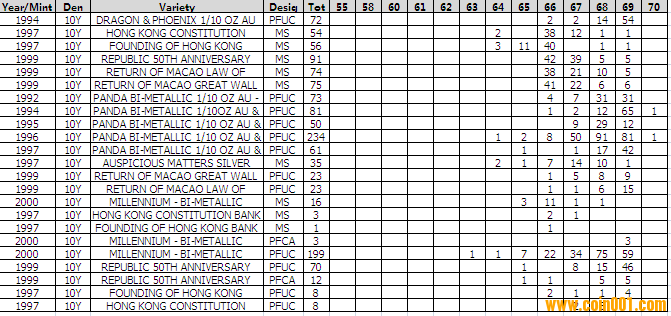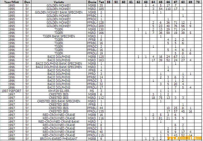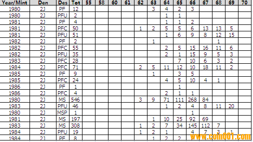 NGC硬幣評級分?jǐn)?shù)分布 ..