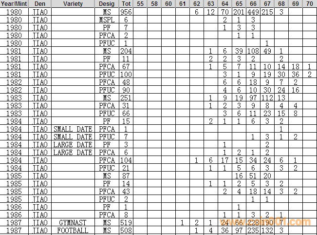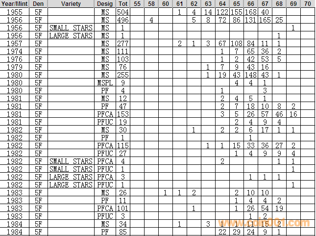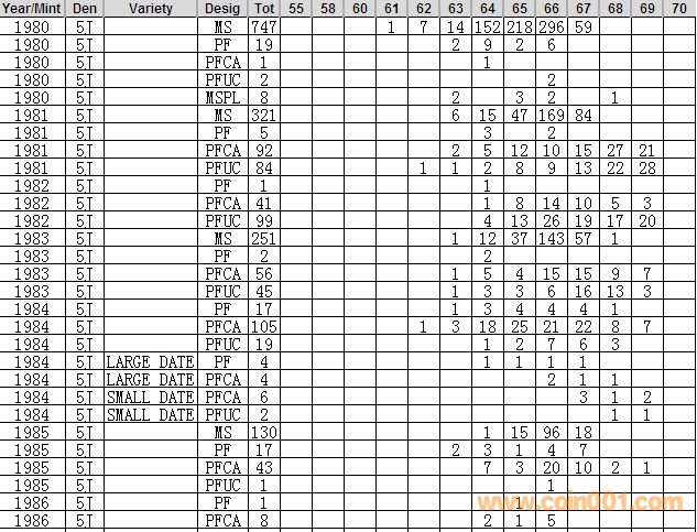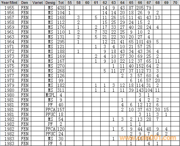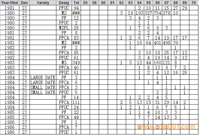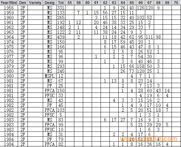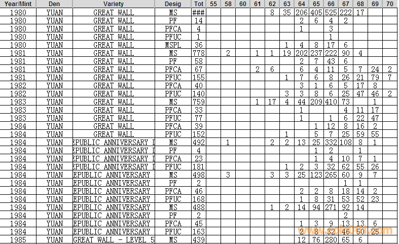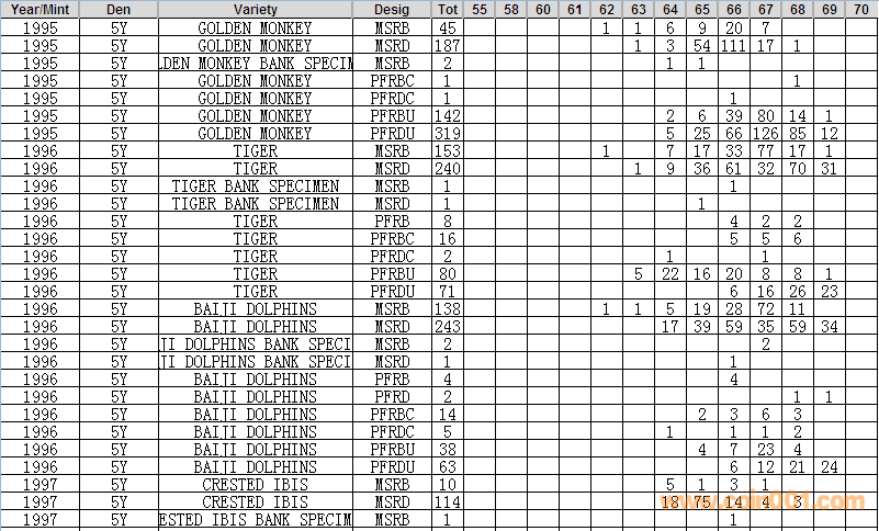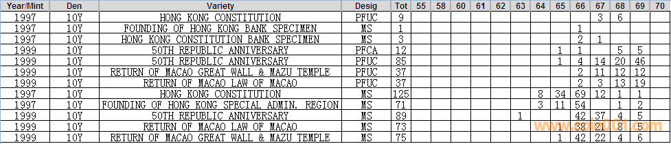 NGC硬幣評級分?jǐn)?shù)分布 ..
