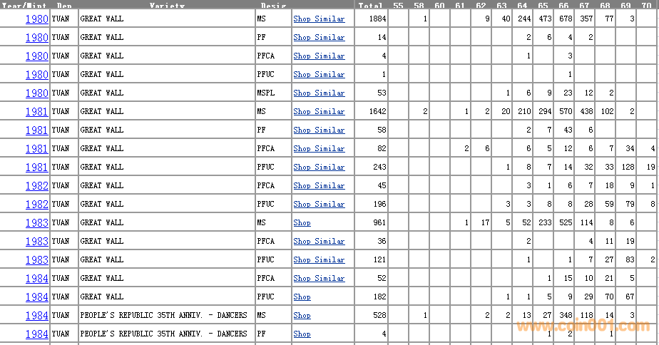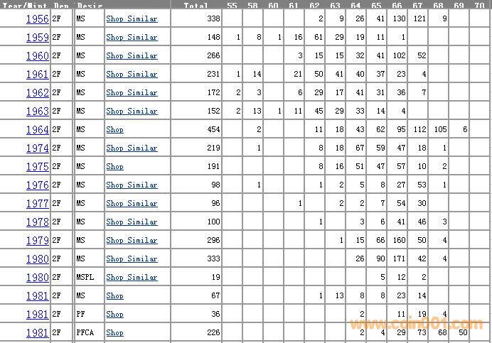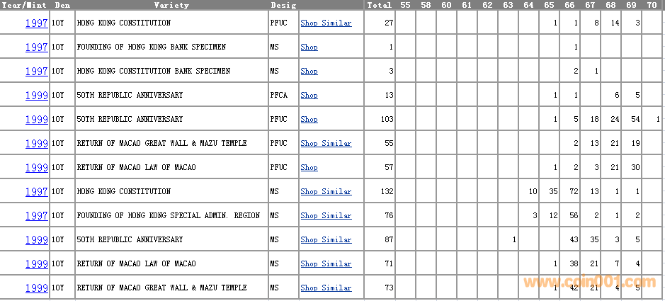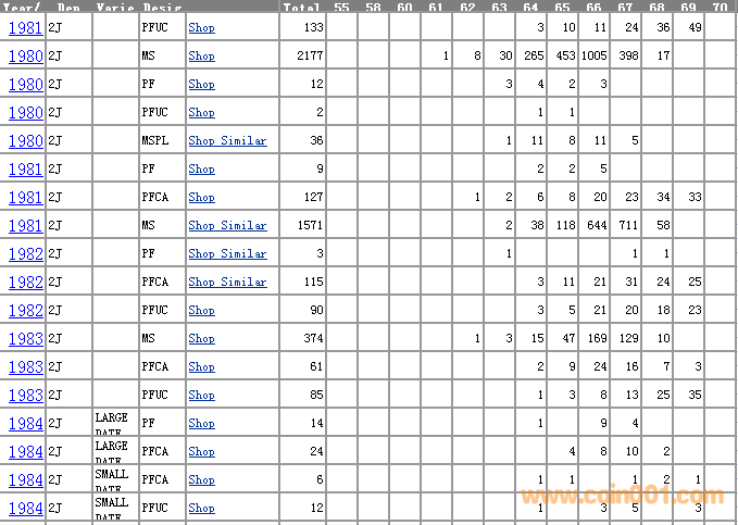 NGC硬幣評(píng)級(jí)分?jǐn)?shù)分布 ..