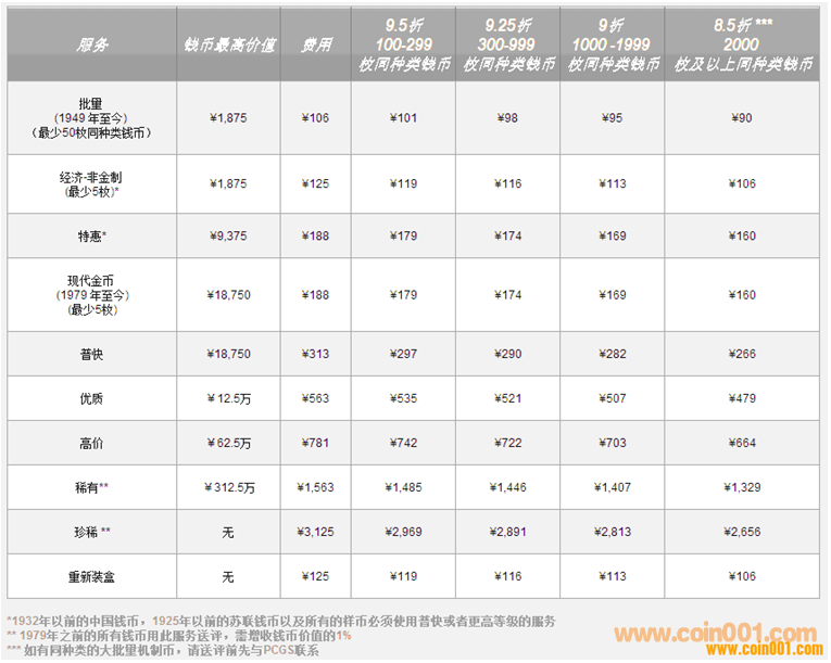 PCGS將于2015年9月在上海進行現場評級,本次評級現代幣、機制幣及紙幣。凡是通過網站提交錢幣及紙幣的會員,均可以獲得評級費5%的現代幣獎勵(此5%現代幣不能提現,只能用于支付拍賣傭金和通過中介訂單購買網站會員藏品費用),現代幣及機制幣滿5枚贈送透明保護袋及藍色PCGS專用20枚幣盒。