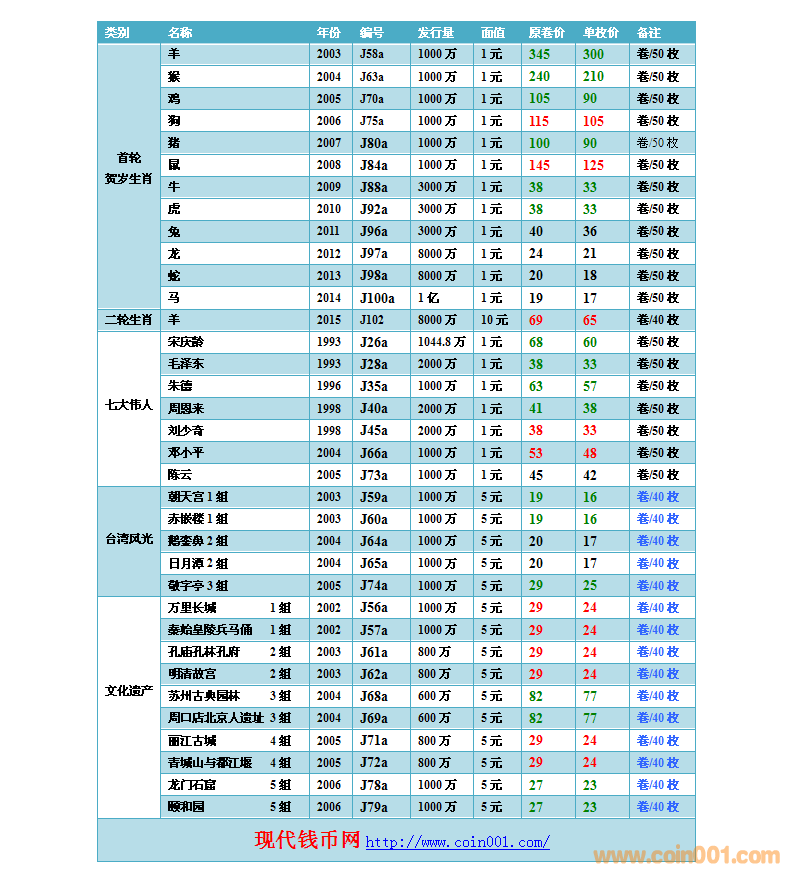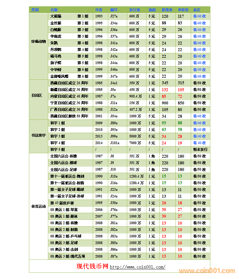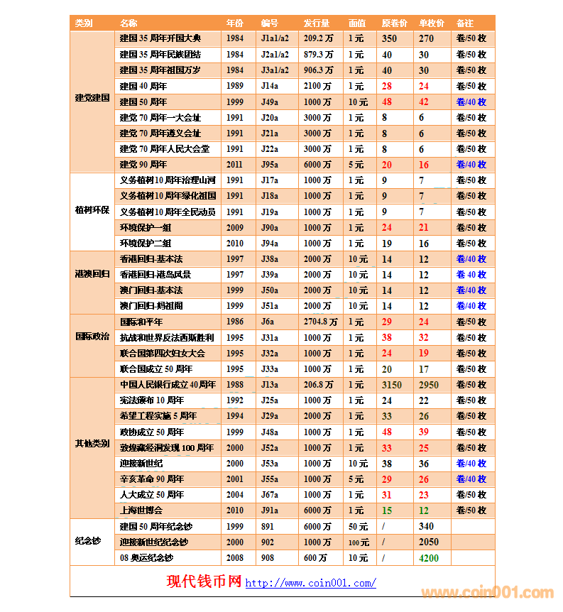 2015.8.15流通紀念幣報價