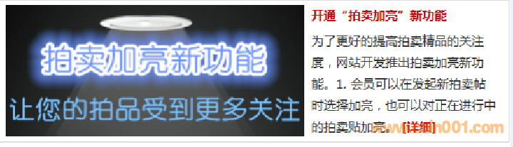 為了更好的提高拍賣精品的關(guān)注度,網(wǎng)站開(kāi)發(fā)推出拍賣加亮新功能。